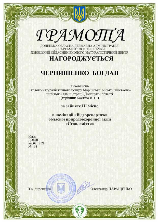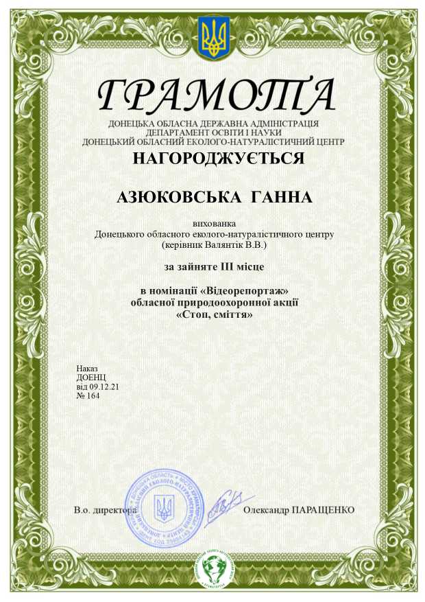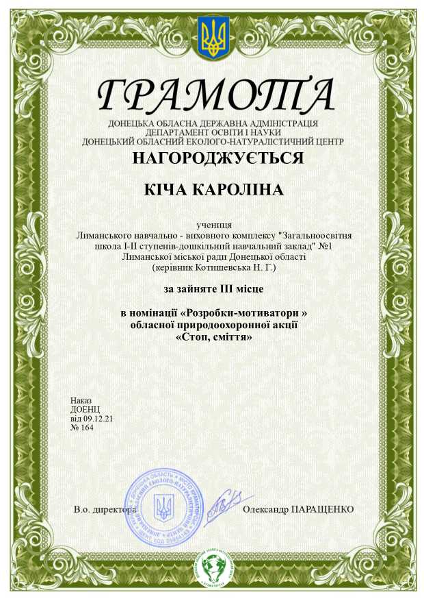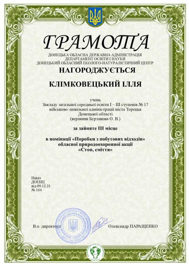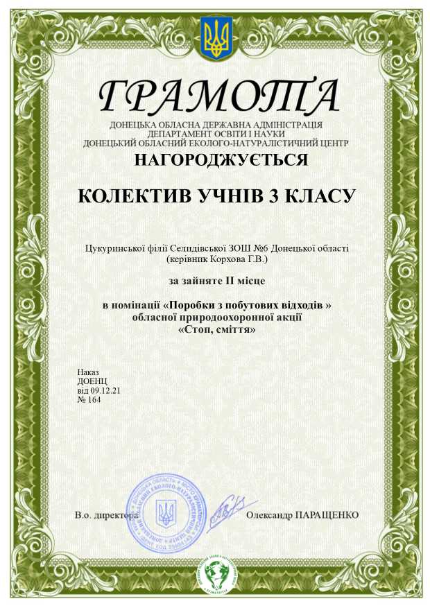 Грамоти учасникам акції “Стоп, сміття” 30 Грудня, 2021 30 Грудня, 2021 Відеорепортаж Звіти Поробки з побутових відходів Розробки-Мотиватори Відеорепортаж Звіти Поробки з побутових відходів Розробки-Мотиватори