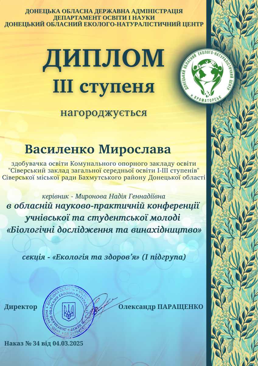 Cекція "Екологія та здоров'я ІІІ підгрупа"