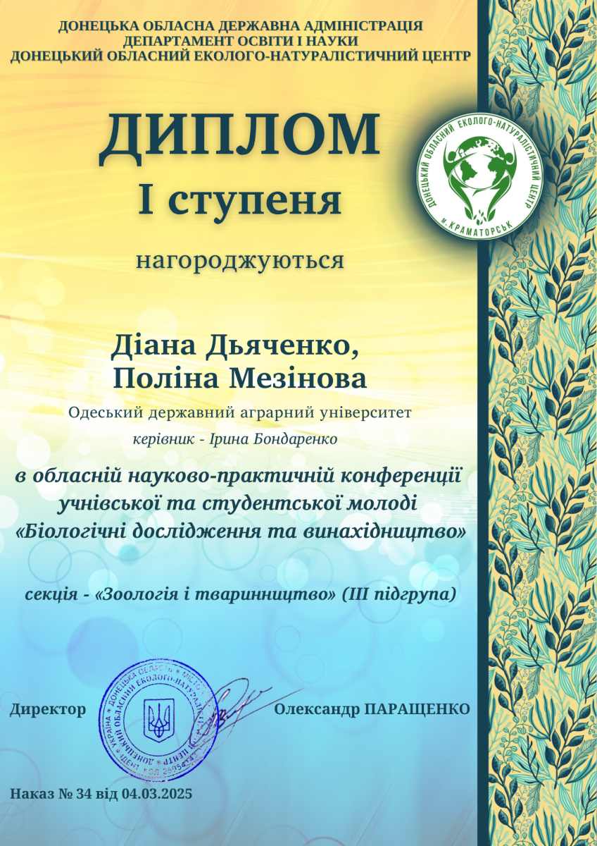 Секція "Зоологія і тваринництво" ІІІ підгрупа