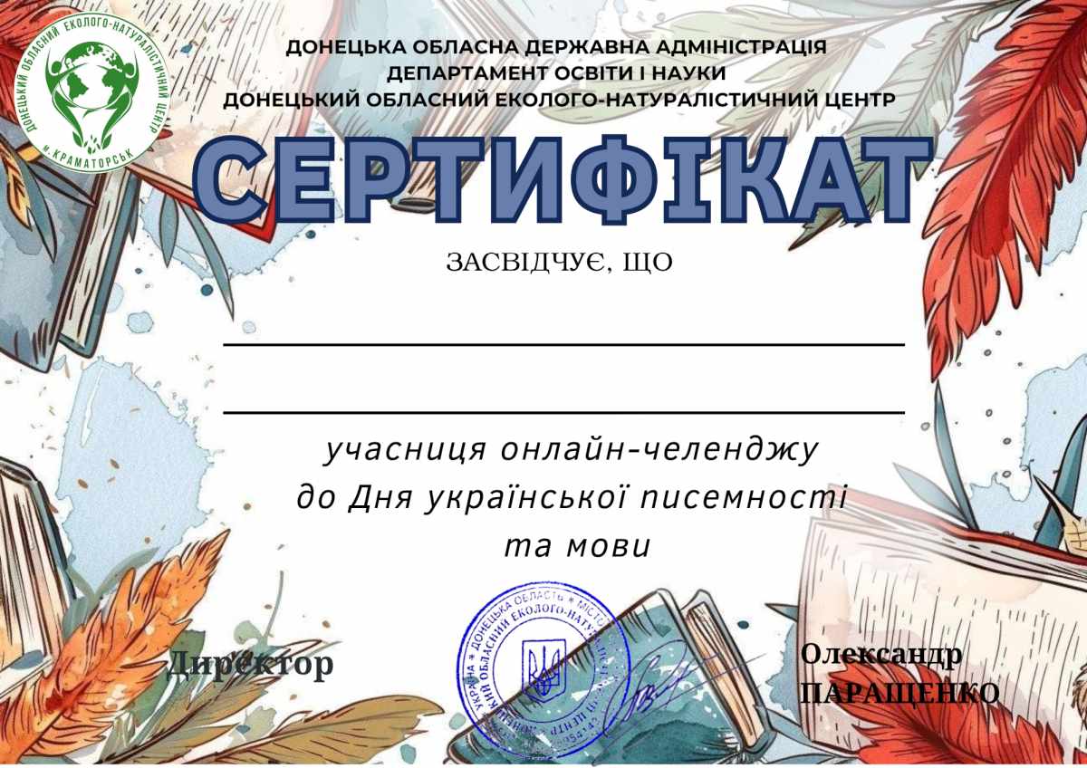 Сертифікати учасників челенджу до Дня української писемності та мови