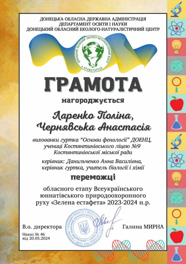 Грамоти переможців і призерів, сертифікати учасників, подяки керівникам обласного конкурсу «Екологічними стежками Донеччини»