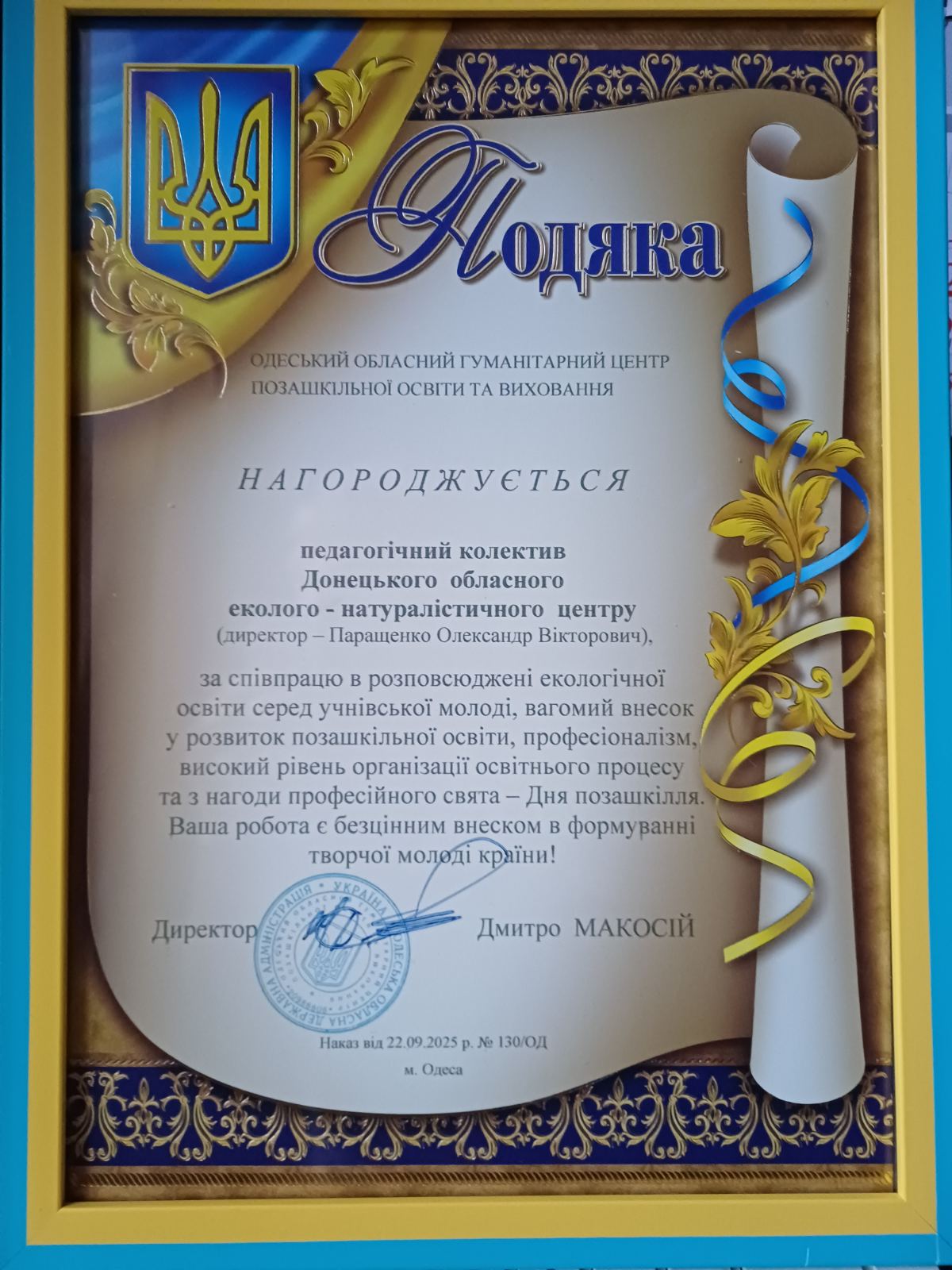 Дуже приємно було отримати подяку від адміністрації та педагогічного колективу Одеського обласного гуманітарного центру позашкільної освіти та виховання колективу Центру.