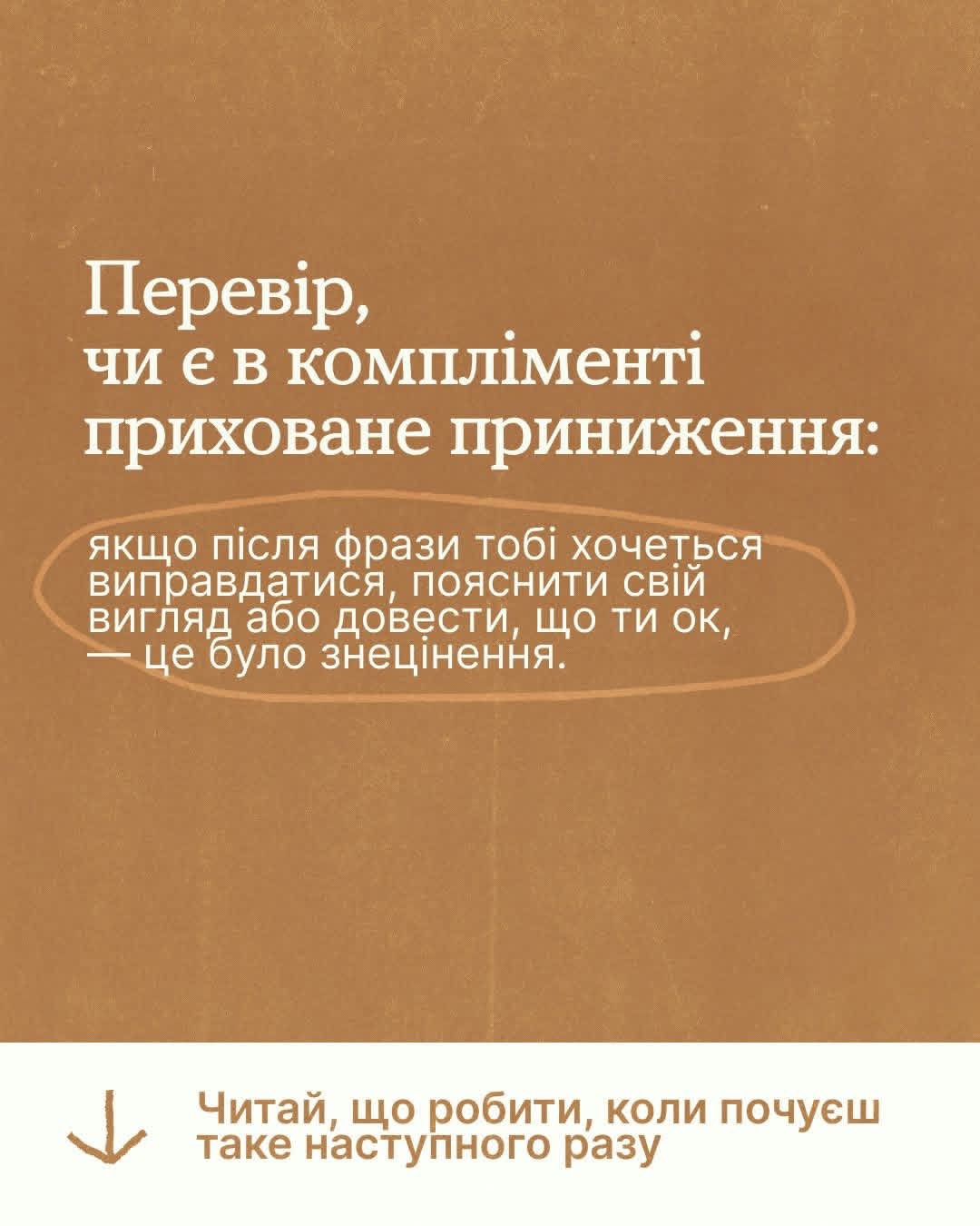 👉 скажи, що тобі не подобаються такі компліменти: «Мені так не ок»